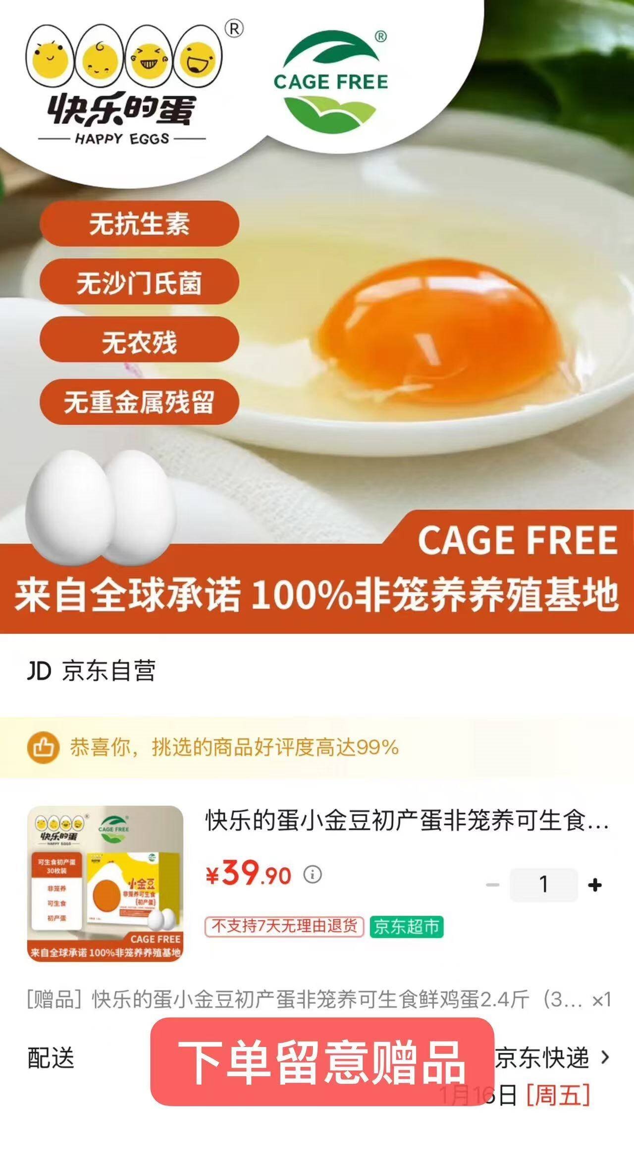 可生食鸡蛋炒底忦 快乐的蛋 可生食初产蛋30枚 39.9亓自营包邮,买一赠一好单发报员2026年01月13日 12:280举报 ——可生食鸡蛋炒底忦——快乐的蛋 可生食初产蛋30枚https://u.jd.com/EggIa3L39.9亓自营包邮,买一赠一*折0.66/枚 无抗生素 真划.算复制文案