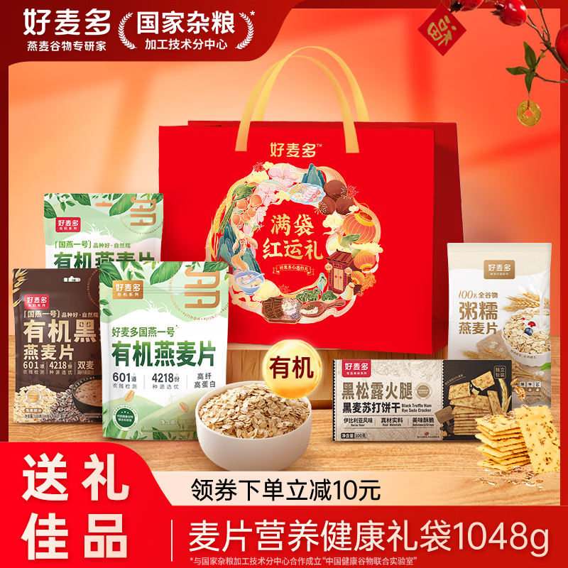 29.9元 好麦多 有机燕麦片礼袋 1048g
