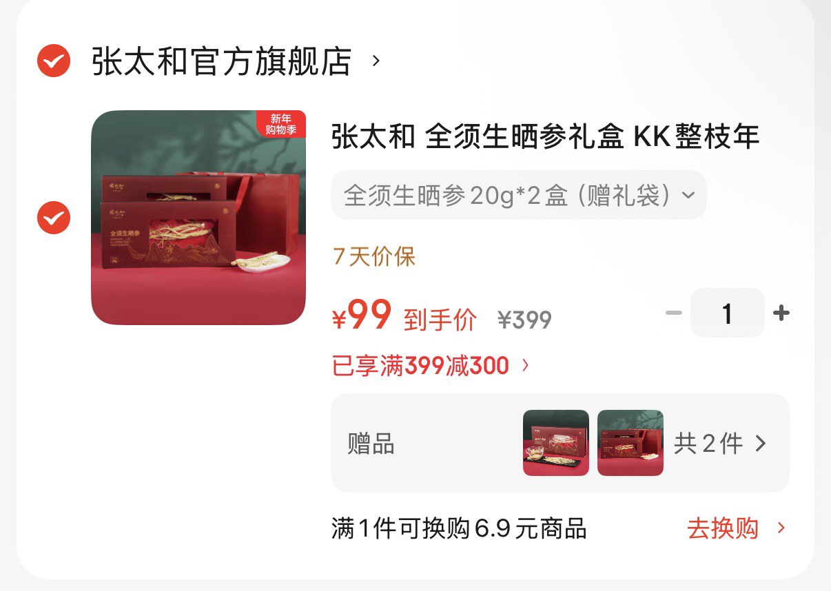 张太和 全须生晒参礼盒 拍下99亓 到手20g*5盒 礼袋好单发报员2026年01月13日 17:380举报 张太和 全须生晒参礼盒 拍下99亓 到手20g*5盒 礼袋https://u.jd.com/ErrUKvN复制文案