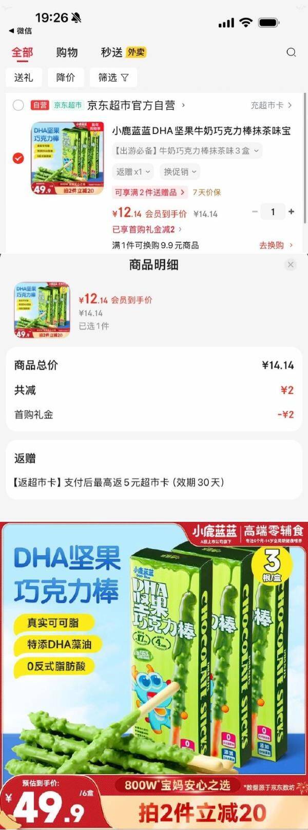 小鹿蓝蓝DHA坚果牛奶巧克力棒126g3盒 入会价,2首单 12.14 返5卡 好单发报员 2026年01月13日 19:27 0 举报 小鹿蓝蓝DHA坚果牛奶巧克力棒126g3盒入会价,2首单【12.14】返5卡 https://u.jd.com/ErDwhQH 复制文案