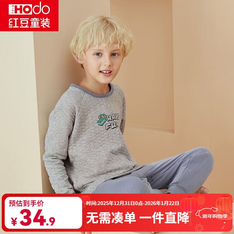 34.9元 红豆 三层保暖内衣 套装中大童