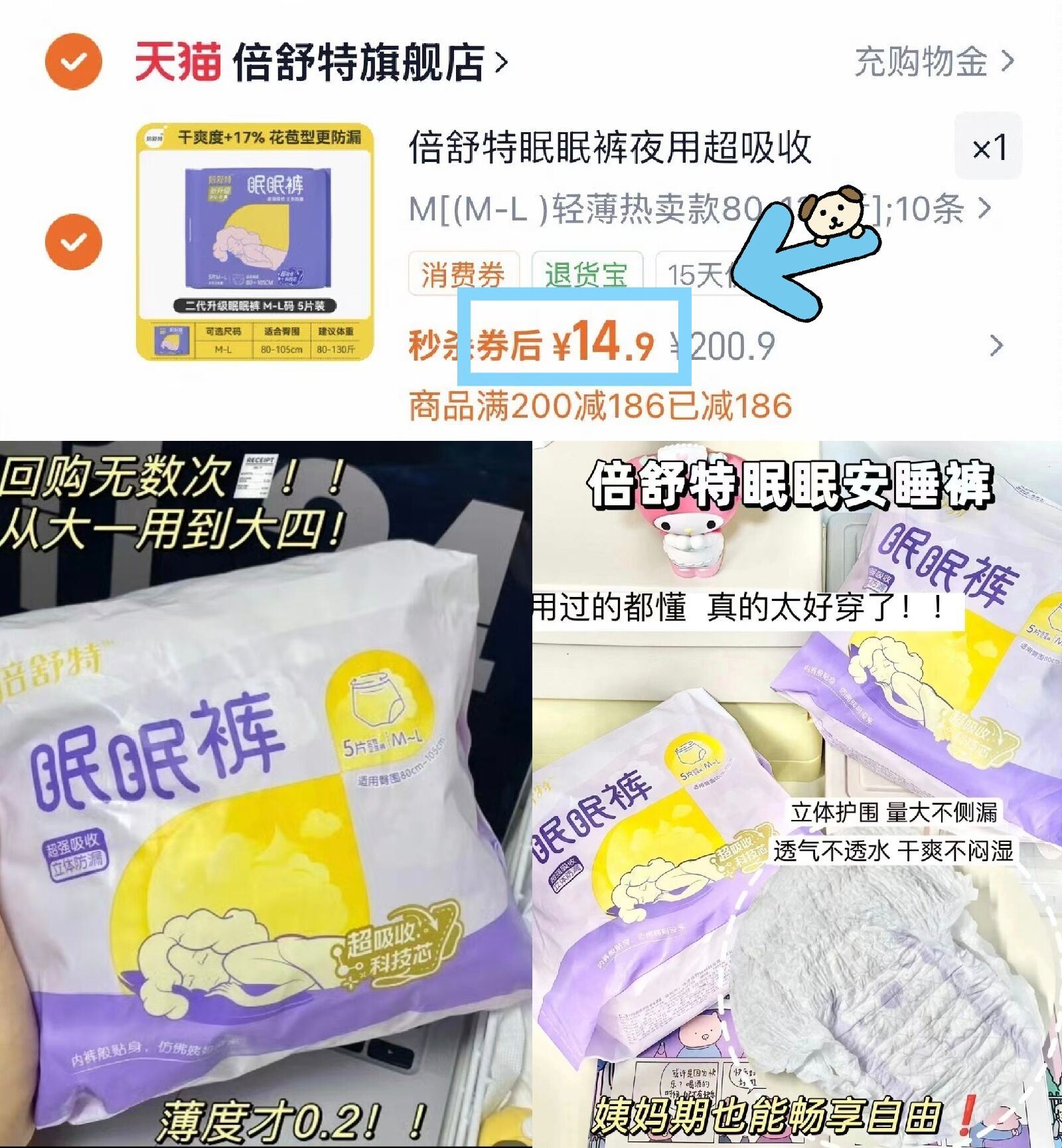 折1.4亓/条10条14.9亓 第二代升级款!!更防漏!! ---好单发报员2026年01月14日 17:160举报 折1.4亓/条10条14.9亓第二代升级款!!更防漏!!---倍舒特安睡裤夜安裤共10条https://m.tb.cn/h.7k6gdrH线下1包几十块!姐妹们快囤复制文案