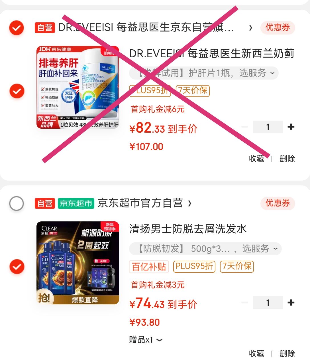 凑单任选1件付后退