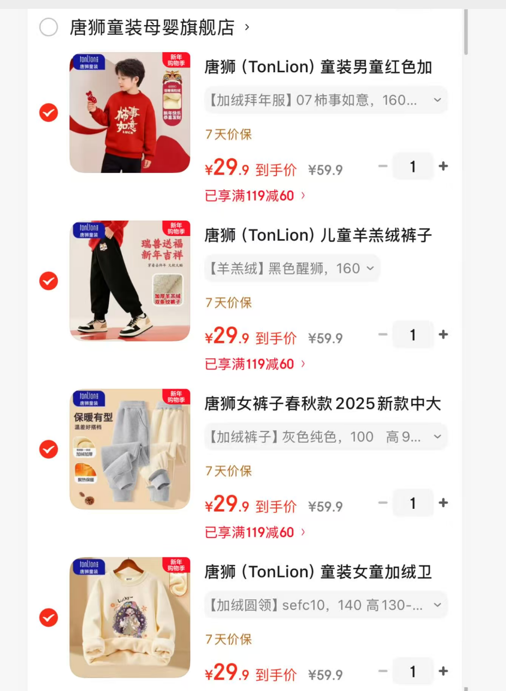 唐狮 (TonLion)男童加绒卫衣/羊羔绒裤子,任选2件【59.8】