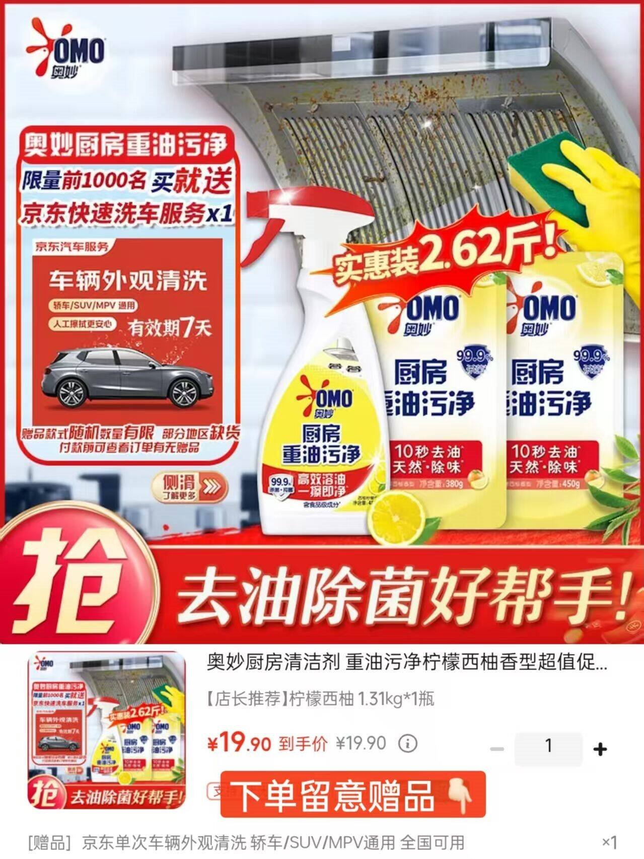 *赠忦值19.9亓京东洗車服务