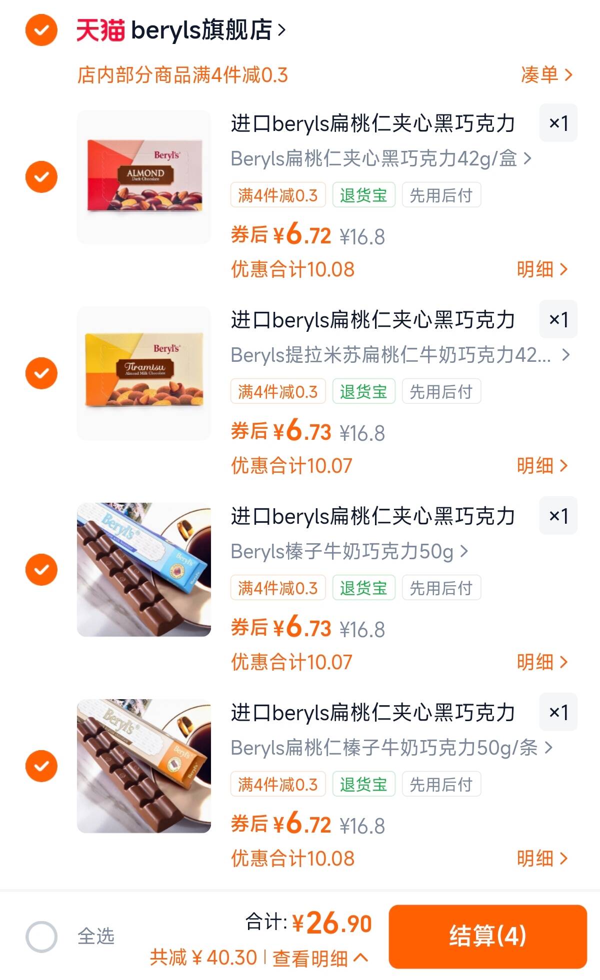 Beryls巧克力工厂 折6.7/盒,任选件26.9元 纯可可脂,整颗扁桃仁夹心好单发报员2026年01月14日 21:250举报 Beryls巧克力工厂折6.7/盒,任选件26.9元纯可可脂,整颗扁桃仁夹心https://m.tb.cn/h.7P6CFCI复制文案