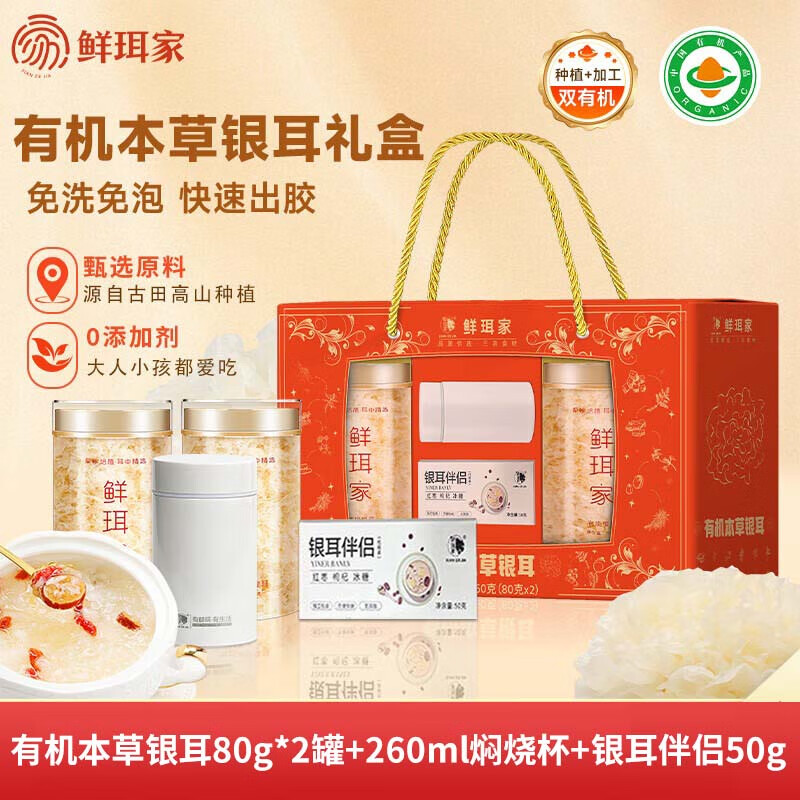 鲜珥家 有机本草银耳礼盒 80克 2罐