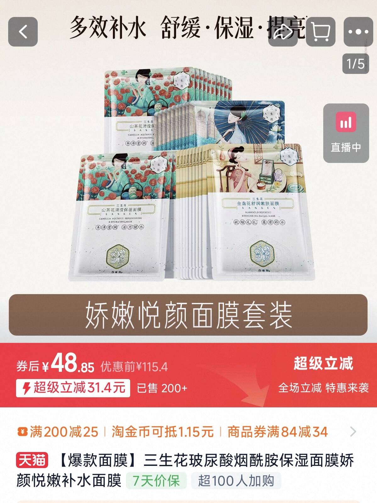 三生花玻尿酸保湿面膜 48.840片!折1.2一片好单发报员2026年01月14日 22:090举报 三生花玻尿酸保湿面膜48.840片!折1.2一片https://m.tb.cn/h.7l5lXQ4复制文案