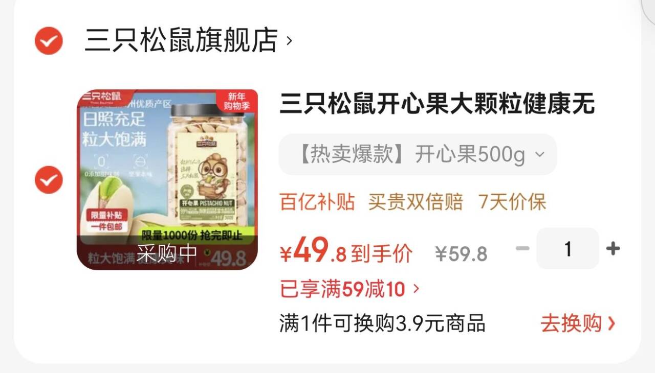 三只松鼠大颗粒开心果 500g罐装,拍下49元.8好单发报员2026年01月15日 09:060举报 三只松鼠大颗粒开心果500g罐装,拍下49元.8https://u.jd.com/E1vCmI8复制文案