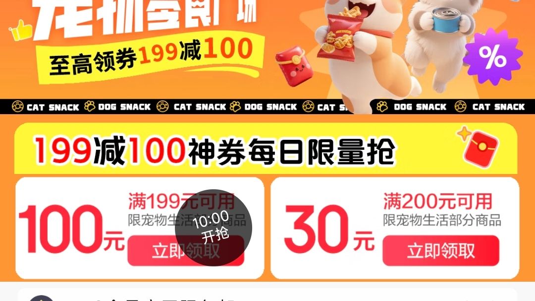 10点 宠物199-100商品券