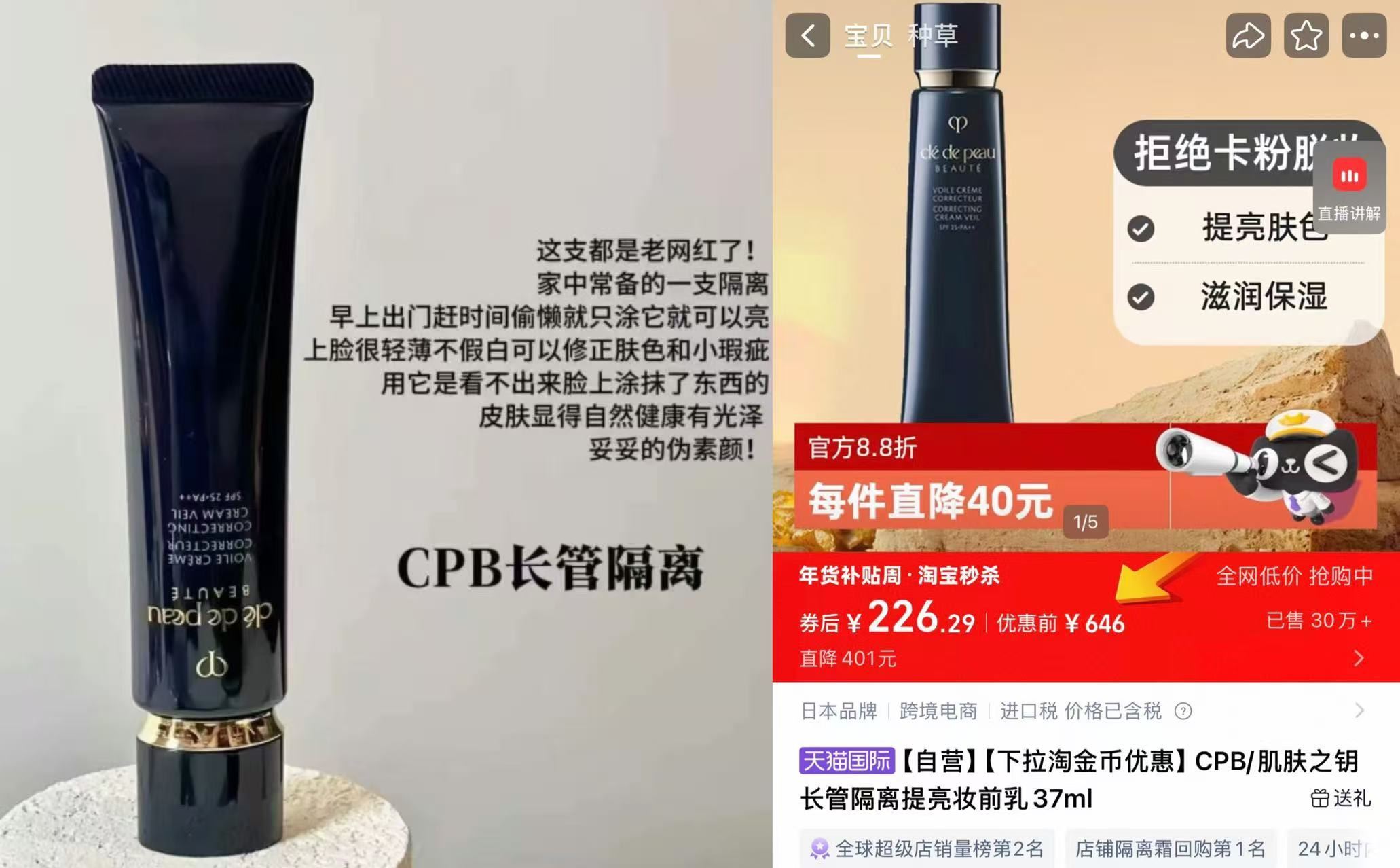 CPB肌肤之钥隔离37ml 秒杀直降到手226元 轻松打造伪素颜妆感好单发报员2026年01月15日 09:560举报 CPB肌肤之钥隔离37ml秒杀直降到手226元轻松打造伪素颜妆感空管数次 贵妇姐姐都在用~-https://m.tb.cn/h.7kvS35m复制文案