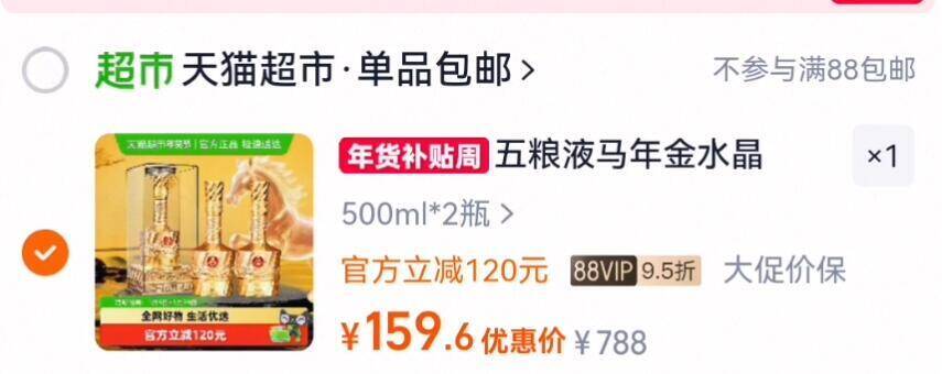 79.5亓/瓶送礼看这款 88vip拍下159.6亓!赠礼袋! 五粮液 水晶52度白酒500ml*2瓶 好单发报员 2026年01月15日 10:26 0 举报 79.5亓/瓶送礼看这款88vip拍下159.6亓!赠礼袋!【五粮液】水晶52度白酒500ml*2瓶https://m.tb.cn/h.7lLLnVk 复制文案