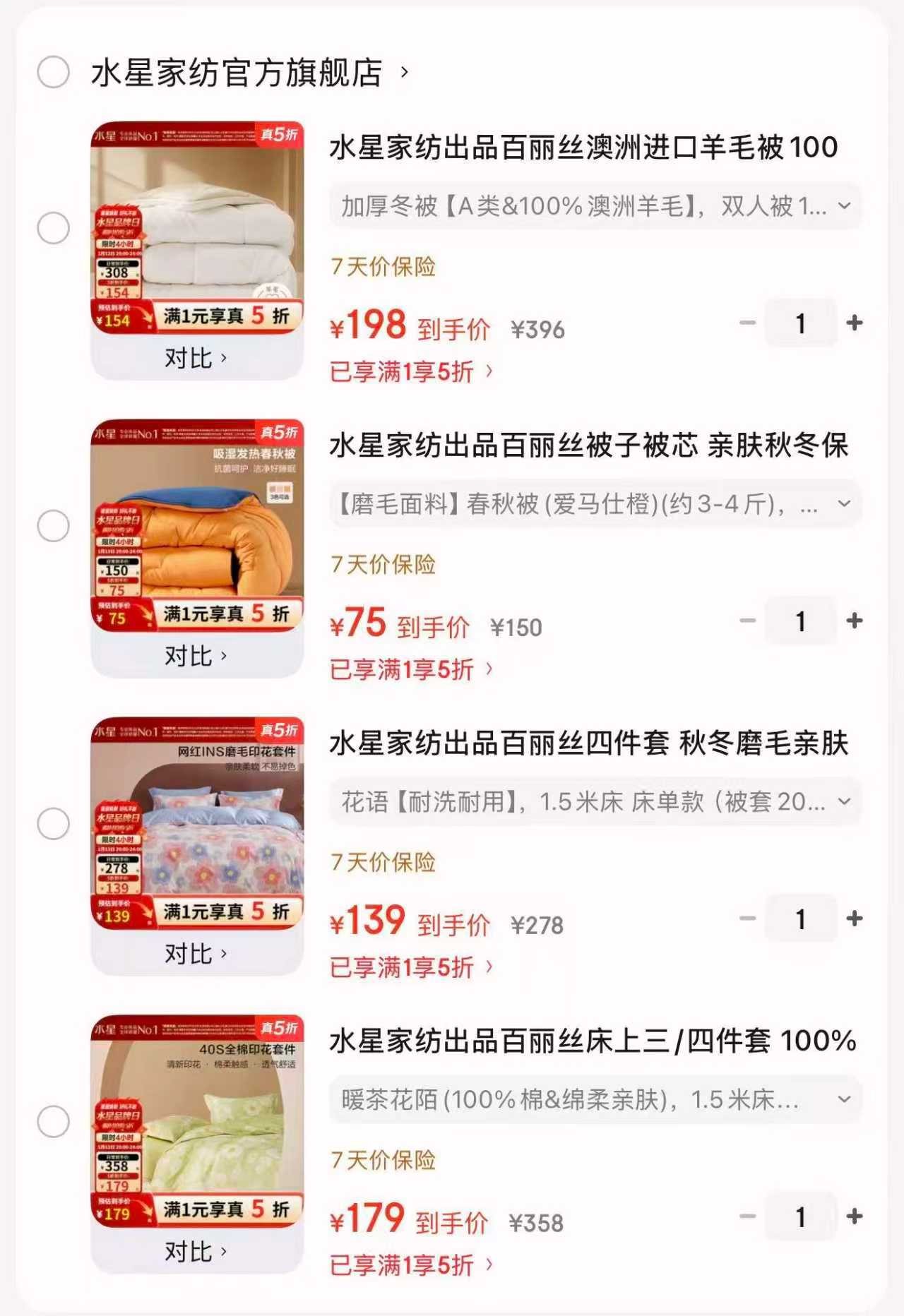 水星家纺 100%纯棉4件套 1.5米床【179】