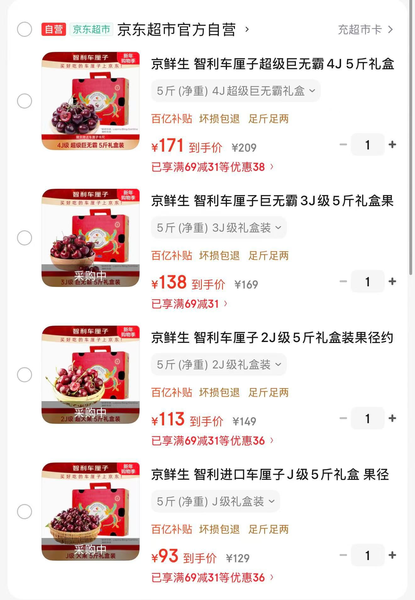 京鲜生 智利进口车厘子4J级5斤【172】https://u.jd.com/Egvna5a
