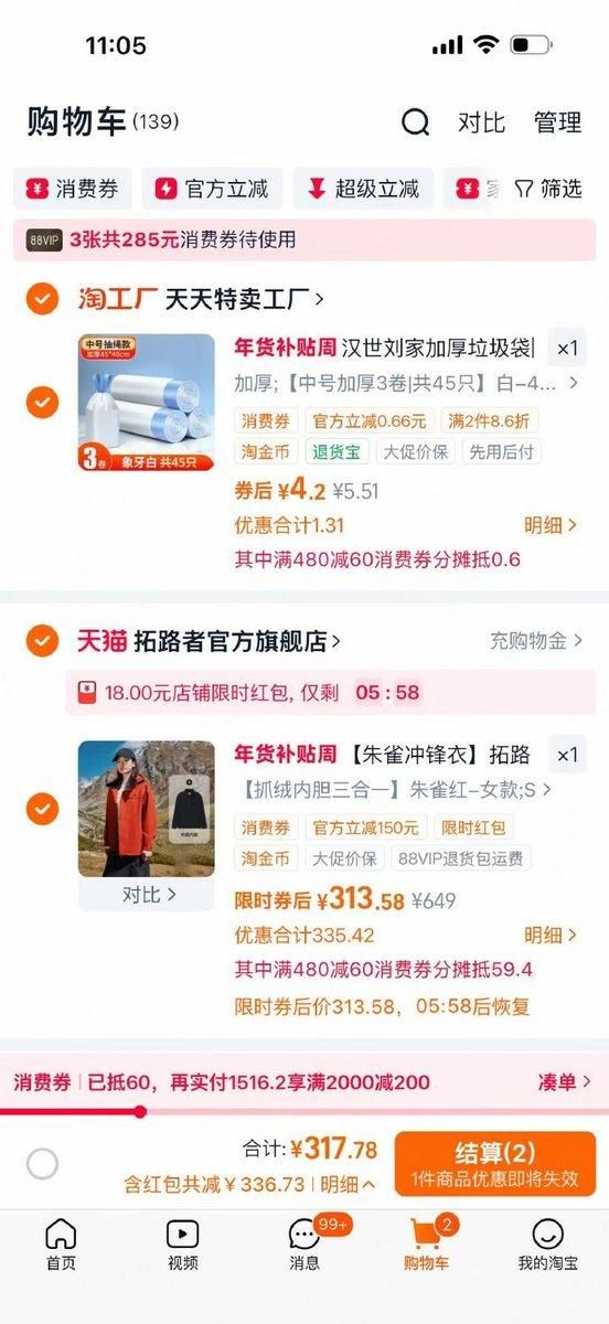 领礼金,浏览弹18限时红包,从淘金币里加购抵10