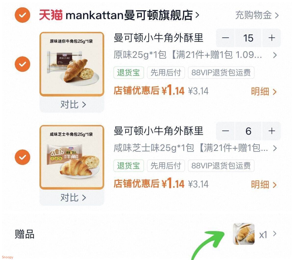 拍21件 送一个 23.9亓1.1一个 曼可顿可颂牛角包共23个 好单发报员 2026年01月15日 12:11 0 举报 拍21件 送一个23.9亓1.1一个曼可顿可颂牛角包共23个https://m.tb.cn/h.7PjtsXO 复制文案
