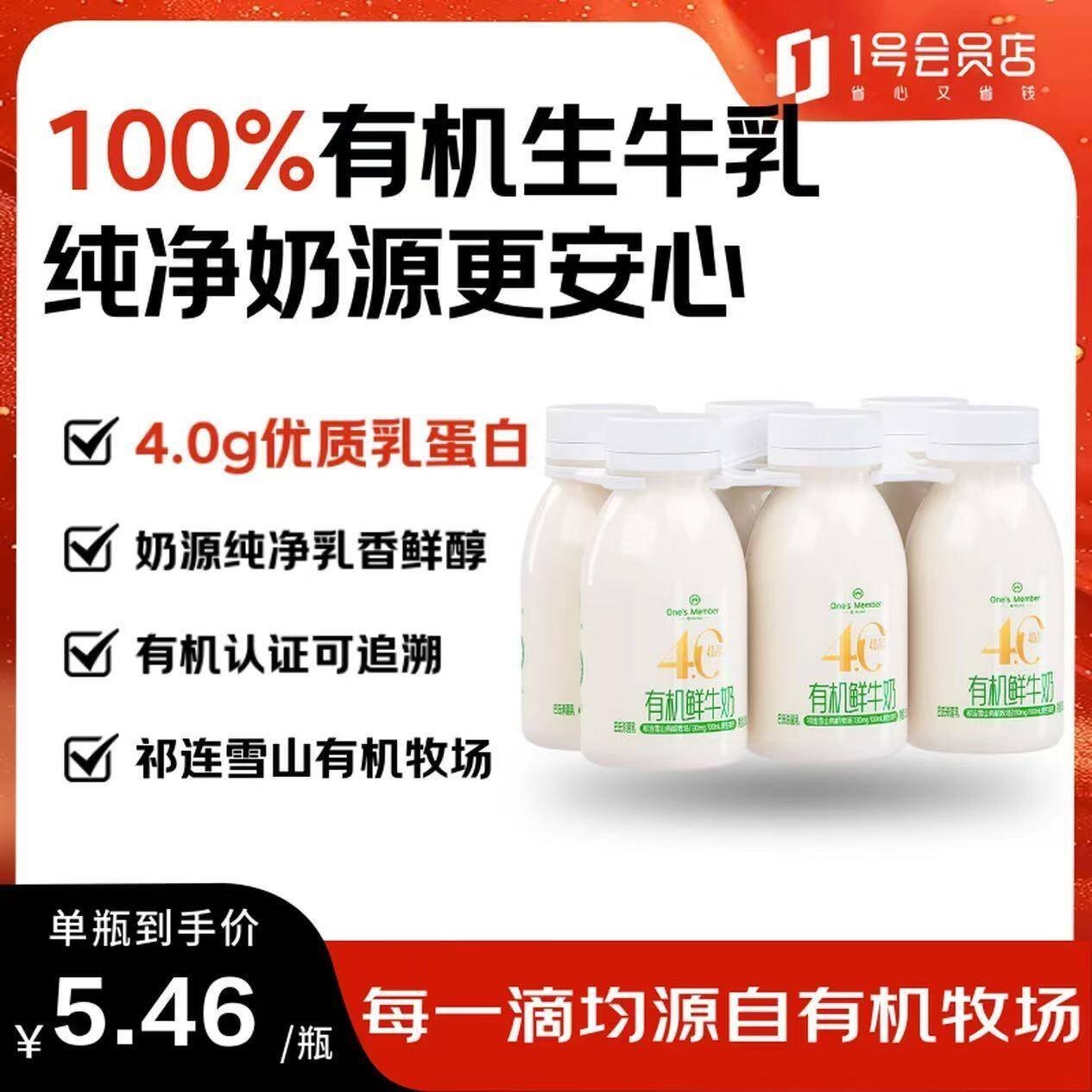 有机4.0g鲜牛奶200ml*6瓶