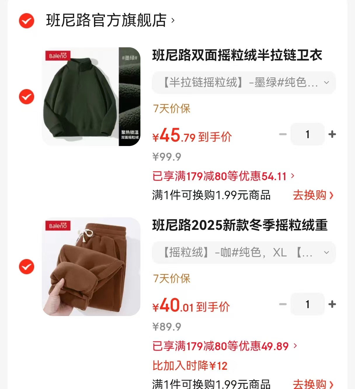 班尼路 冬季摇粒绒重磅束脚裤