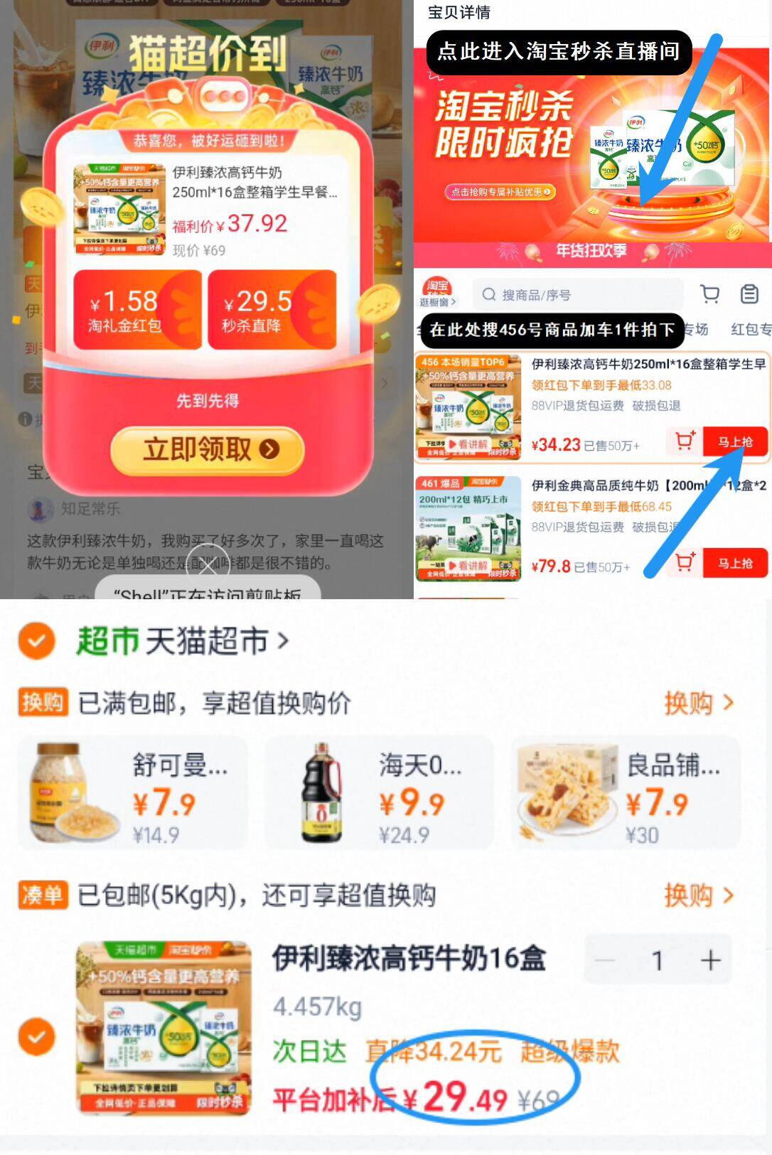 神圿返场折1.8亓/盒冲 拍下29.4亓!无券叠礼金 3福袋 伊利 臻浓高钙牛奶250ml*16盒好单发报员2026年01月15日 16:500举报 神圿返场折1.8亓/盒冲拍下29.4亓!无券叠礼金 3福袋【伊利】臻浓高钙牛奶250ml*16盒1、下拉详情页进淘宝秒杀直播间2、购物车搜索处搜456号 加车拍下https://m.tb.cn/h.7PdJjf2复制文案