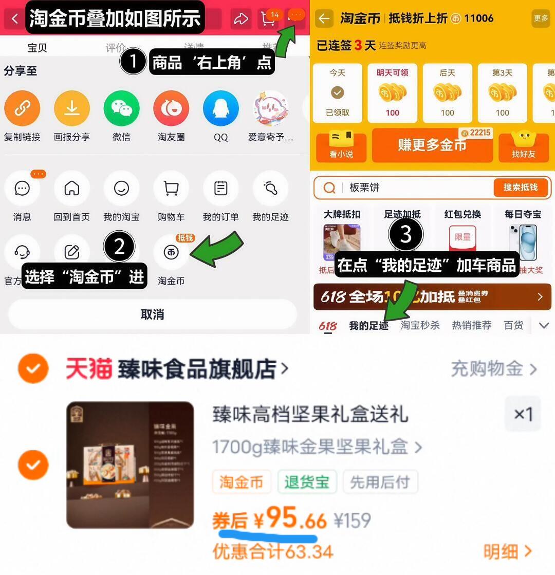 95亓速度叠3亓淘金币 臻味 坚果礼盒1700g 1、如图点右上角3个点,选淘金币 好单发报员 2026年01月15日 18:35 0 举报 95亓速度叠3亓淘金币【臻味】坚果礼盒1700g1、如图点右上角3个点,选淘金币2、选我的足迹-找到商品加车拍下https://m.tb.cn/h.7lYElbf 复制文案