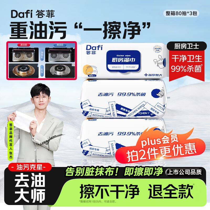 【自营】答菲 厨房湿巾 80抽*3包