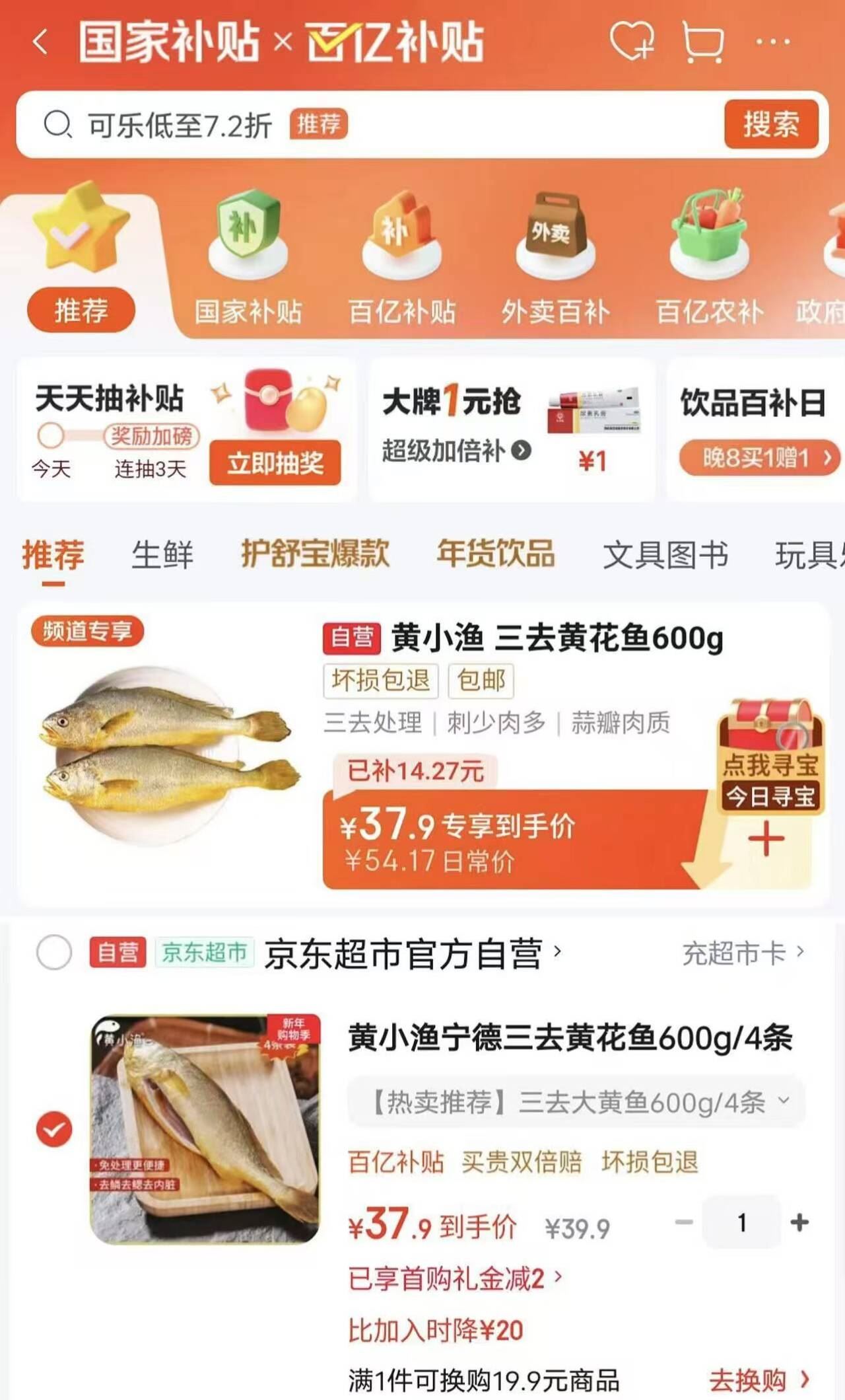 9.4元/条 自营好价! 先加购再去app首页-国家补贴处找到 自营 黄小渔 宁德三去黄花鱼 600g/4条好单发报员2026年01月16日 10:290举报 9.4元/条 自营好价!先加购再去app首页-国家补贴处找到【自营】黄小渔 宁德三去黄花鱼 600g/4条https://u.jd.com/Er0K4nw 共4条叠首购37.9元!复制文案