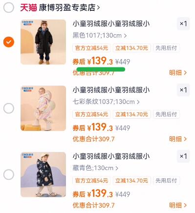 139亓速度全款式任选 宝妈快选码,90-170cm都有 康博 儿童羽绒服中长款 好单发报员 2026年01月16日 13:40 0 举报 139亓速度全款式任选宝妈快选码,90-170cm都有【康博】儿童羽绒服中长款https://m.tb.cn/h.7PvAdgy 复制文案