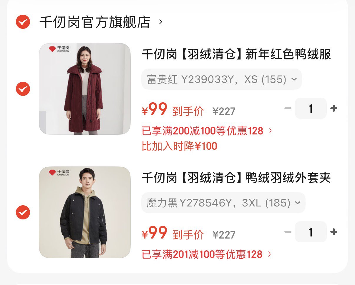 千仞岗男女羽绒服 99亓