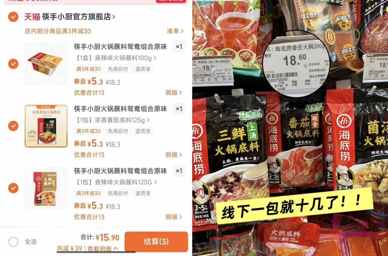 5.3/件 海底捞火锅底料蘸料 拍3件15元.9 线下18.9/包! 底料、蘸料、炒菜料都有!好单发报员2026年01月16日 16:050举报 5.3/件 海底捞火锅底料蘸料拍3件15元.9 线下18.9/包!底料、蘸料、炒菜料都有!加点清水就完美复刻海底捞-https://m.tb.cn/h.7OJD0L8复制文案