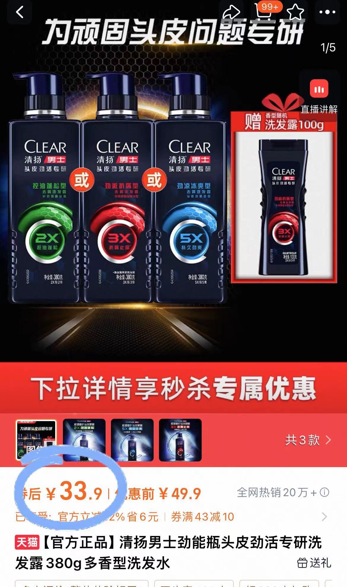 33.9亓 380g 贈100g 清扬 男士专研洗发露 大油头天菜,去屑止痒yyds好单发报员2026年01月16日 16:110举报 33.9亓 380g 贈100g【清扬】男士专研洗发露大油头天菜,去屑止痒yyds控油去屑超快给男友安排-https://m.tb.cn/h.7lj6uH6复制文案