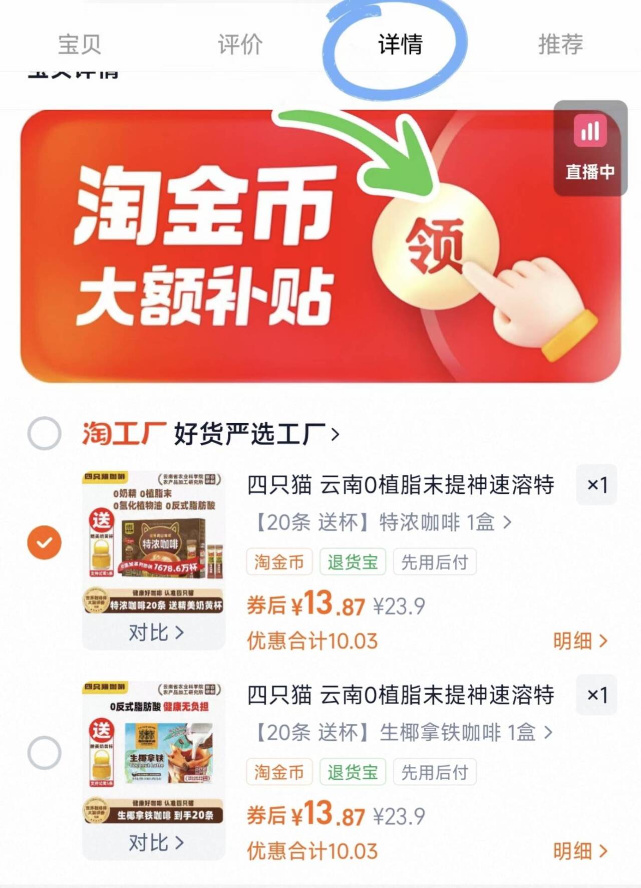 四只猫云南农科院研制 云南小粒咖啡六种口味任选 -好单发报员2026年01月16日 16:280举报 四只猫云南农科院研制云南小粒咖啡六种口味任选-下拉抵琻币13元.820条https://m.tb.cn/h.7PBPgTU复制文案