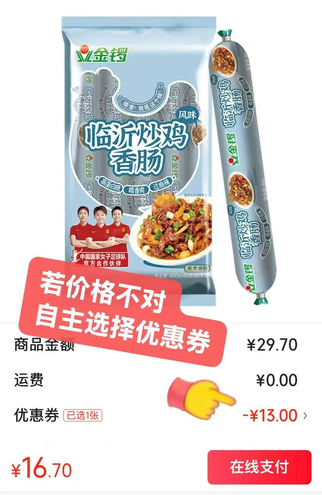金锣香肠发車 金锣 临沂炒鸡风味香肠400g 买3件16.7亓,折5.5亓/袋好单发报员2026年01月16日 20:210举报 ——金锣香肠发車——金锣 临沂炒鸡风味香肠400ghttps://u.jd.com/EGpxINA买3件16.7亓,折5.5亓/袋*折0.5/支 口感鲜美 满口爆香复制文案