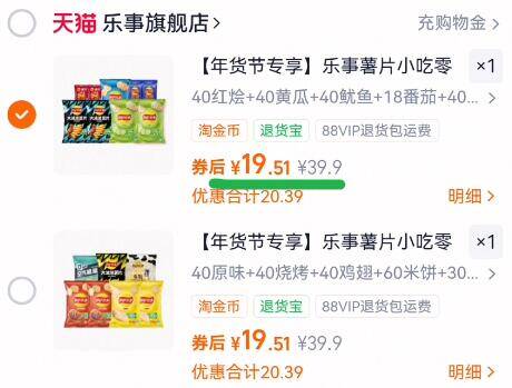 19.5亓速度组合任选 最多到手9包,折1块多/包 乐事 薯片薯条组合装 好单发报员 2026年01月16日 22:21 0 举报 19.5亓速度组合任选最多到手9包,折1块多/包【乐事】薯片薯条组合装https://m.tb.cn/h.7lWlIA6 复制文案