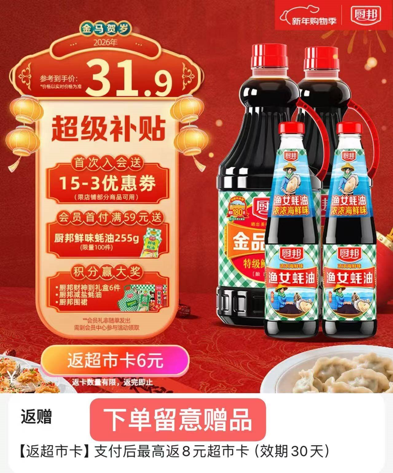 厨邦调味发車 先领11-5卷 厨邦 调味套装4件套共3.94kg好单发报员2026年01月16日 23:150举报 ——厨邦调味发車——先领11-5卷https://y-03.cn/4A3rZN厨邦 调味套装4件套共3.94kghttps://u.jd.com/E6Tbrl626.9亓自营包邮,新客减3亓*再反超.市卡8亓 相当于15.9亓复制文案