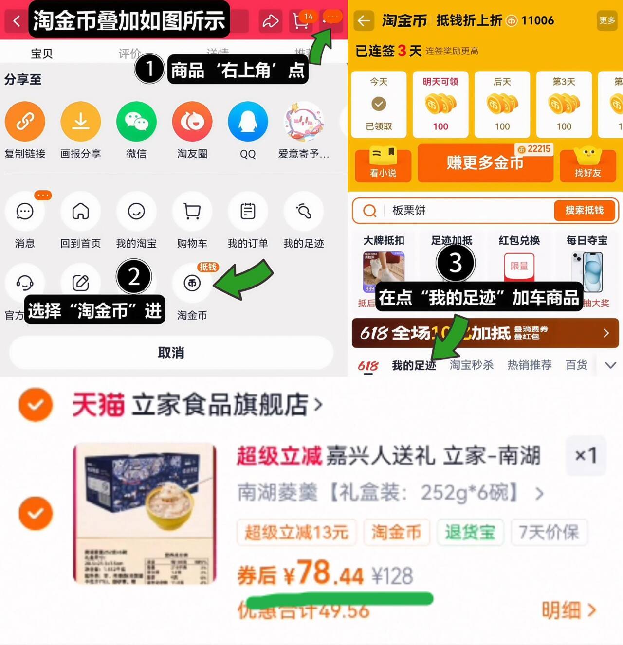 0点78.4亓叠7美食虹笣 立家食品 南湖菱羹礼盒252g*6碗 1、如图点右上角3个点,选淘金币好单发报员2026年01月16日 23:520举报 0点78.4亓叠7美食虹笣【立家食品】南湖菱羹礼盒252g*6碗1、如图点右上角3个点,选淘金币2、选我的足迹-找到商品拍下https://m.tb.cn/h.7lVKSlD复制文案