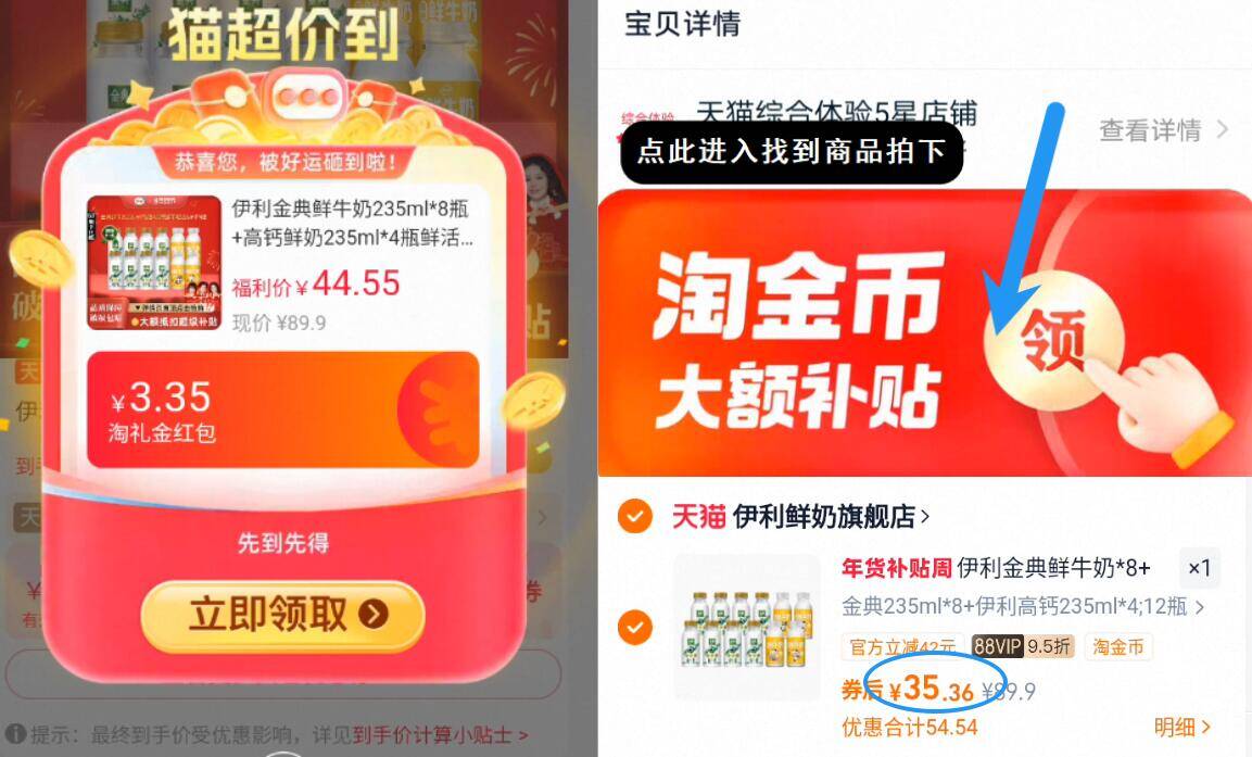 88vip2.9亓/瓶速叠礼金 7金币 下拉详情进淘金币会场拍35亓 金典 鲜奶组合235ml*12瓶好单发报员2026年01月17日 10:080举报 88vip2.9亓/瓶速叠礼金 7金币下拉详情进淘金币会场拍35亓【金典】鲜奶组合235ml*12瓶https://m.tb.cn/h.7lzA5hT复制文案