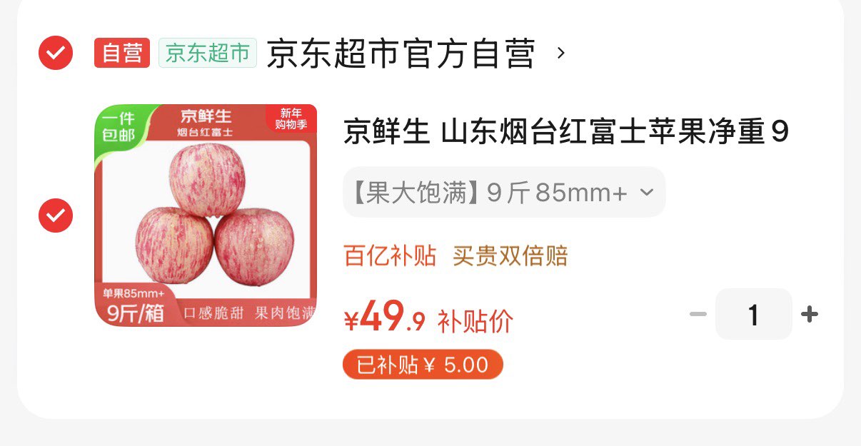 京鲜生 山东咽台红富士 拍下49.9亓 净重9斤大果好单发报员2026年01月17日 10:090举报 京鲜生 山东咽台红富士拍下49.9亓 净重9斤大果https://u.jd.com/E6WSMla 复制文案