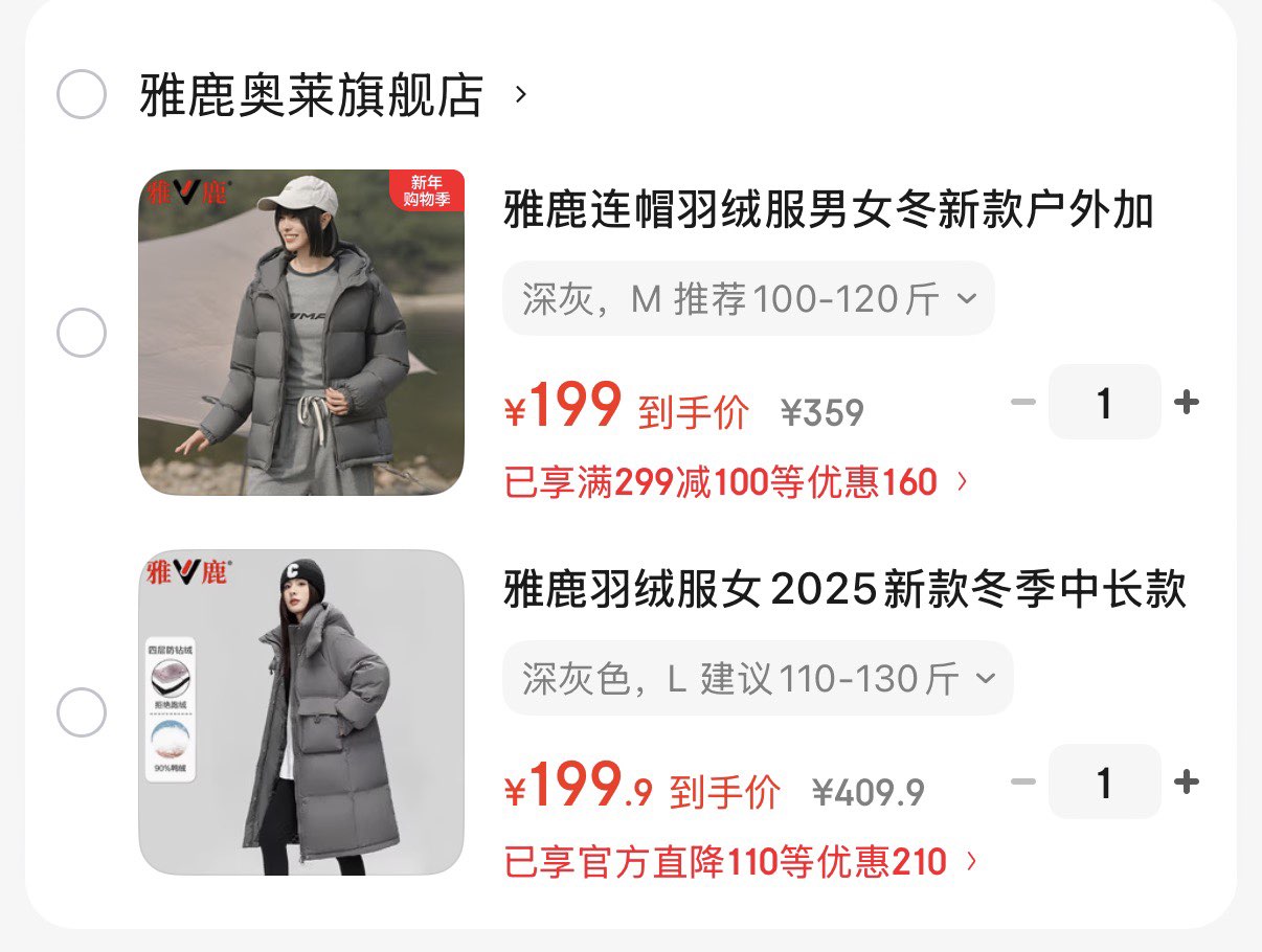 雅鹿中长连帽羽绒服 199亓