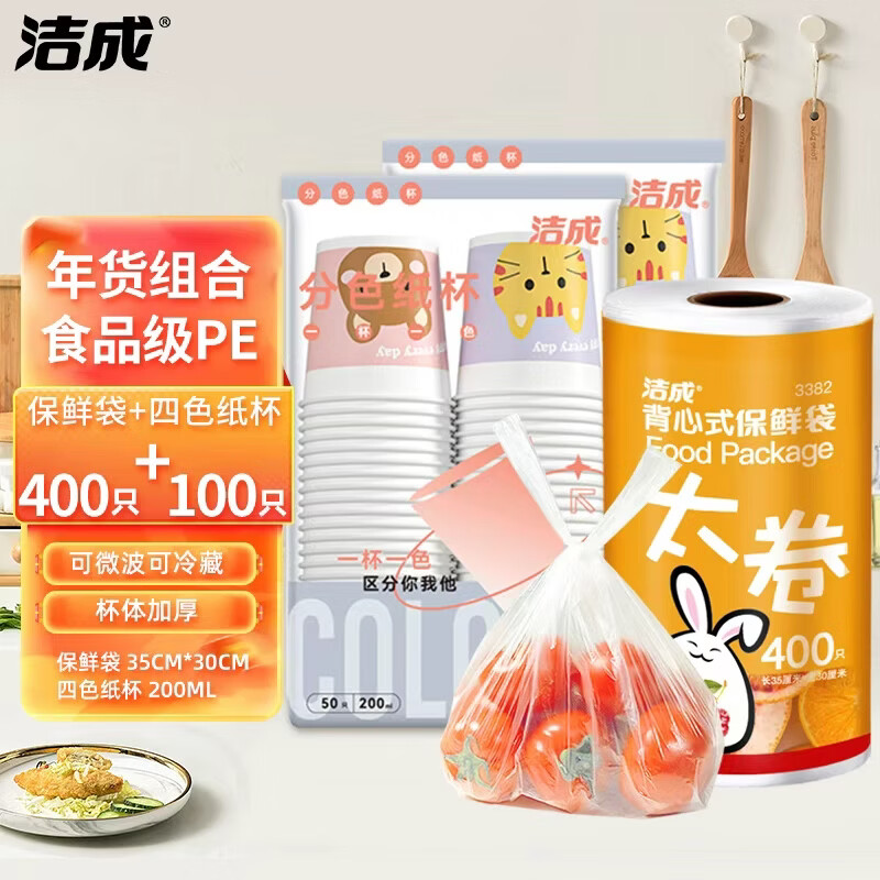 16.9元!洁成 大号背心保鲜袋400只