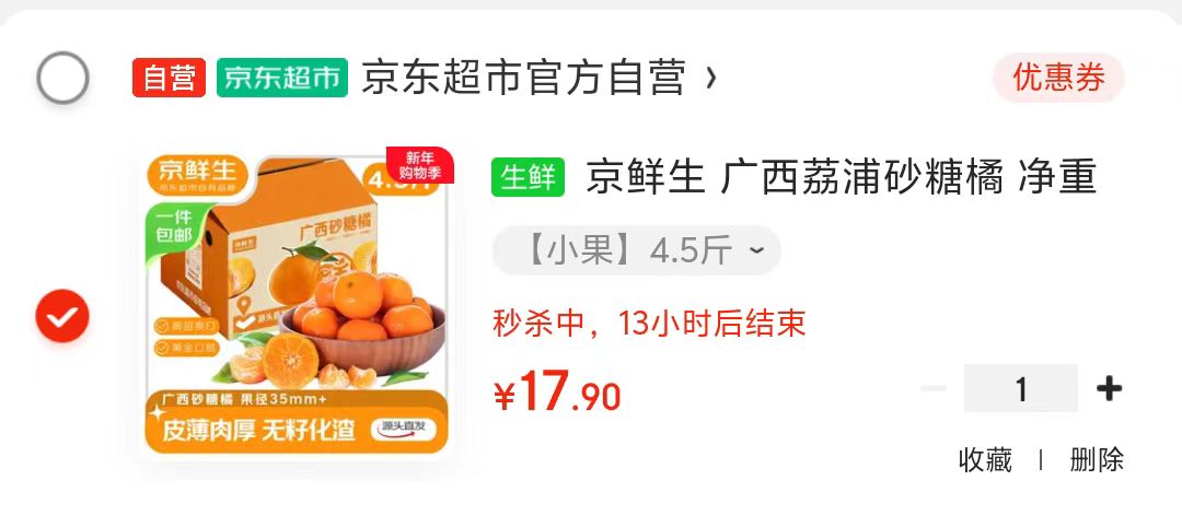 京鲜生广西荔浦砂糖橘净重4.5斤 - 17.9