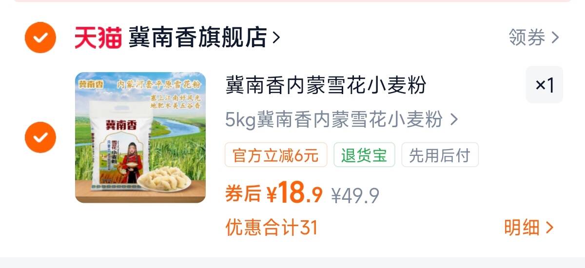 速冀南香旗舰店 内蒙雪花小麦粉斤18元.9