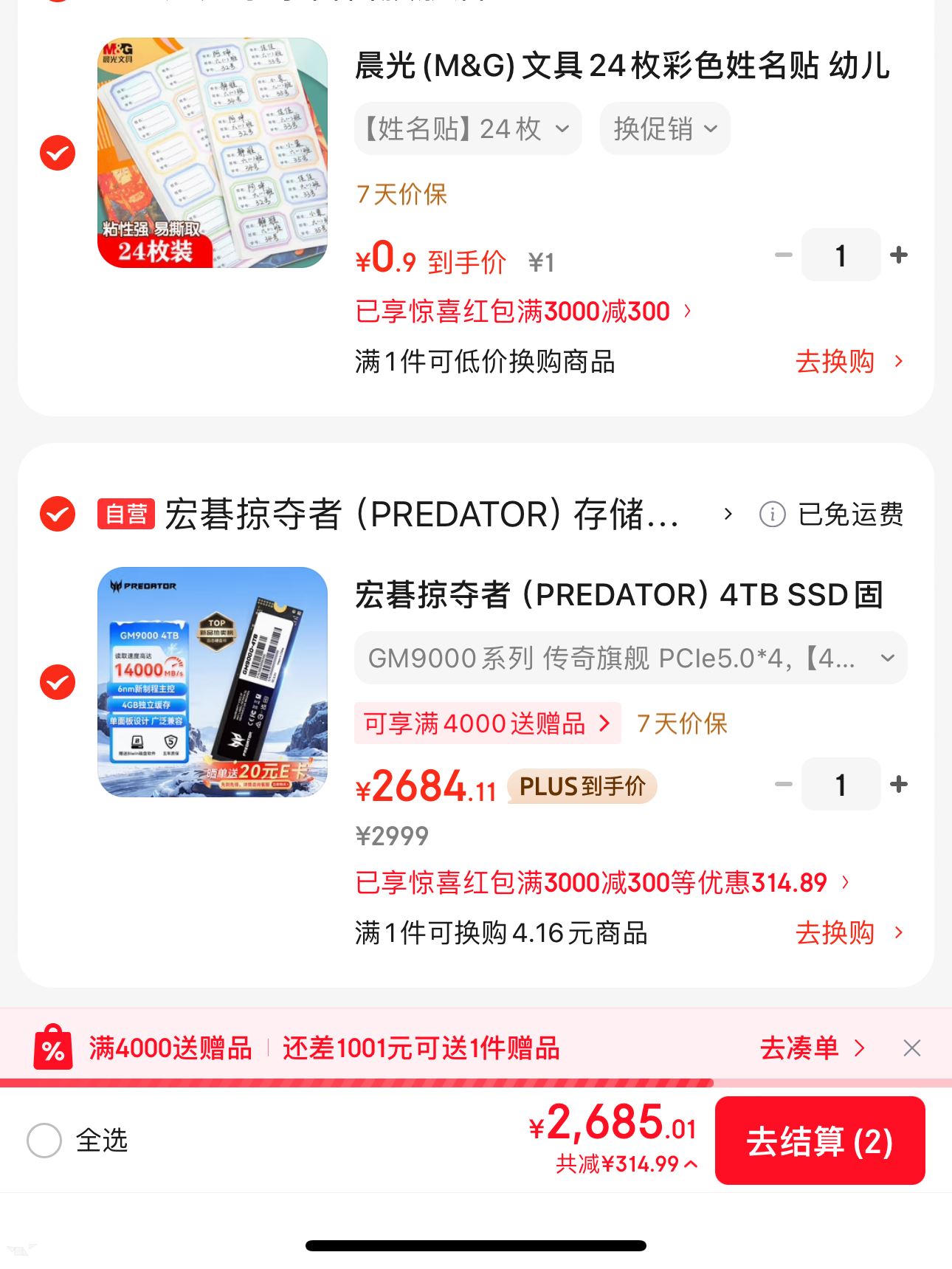 ③去构物唓,根据提示,凑掸用3000-300惊喜包