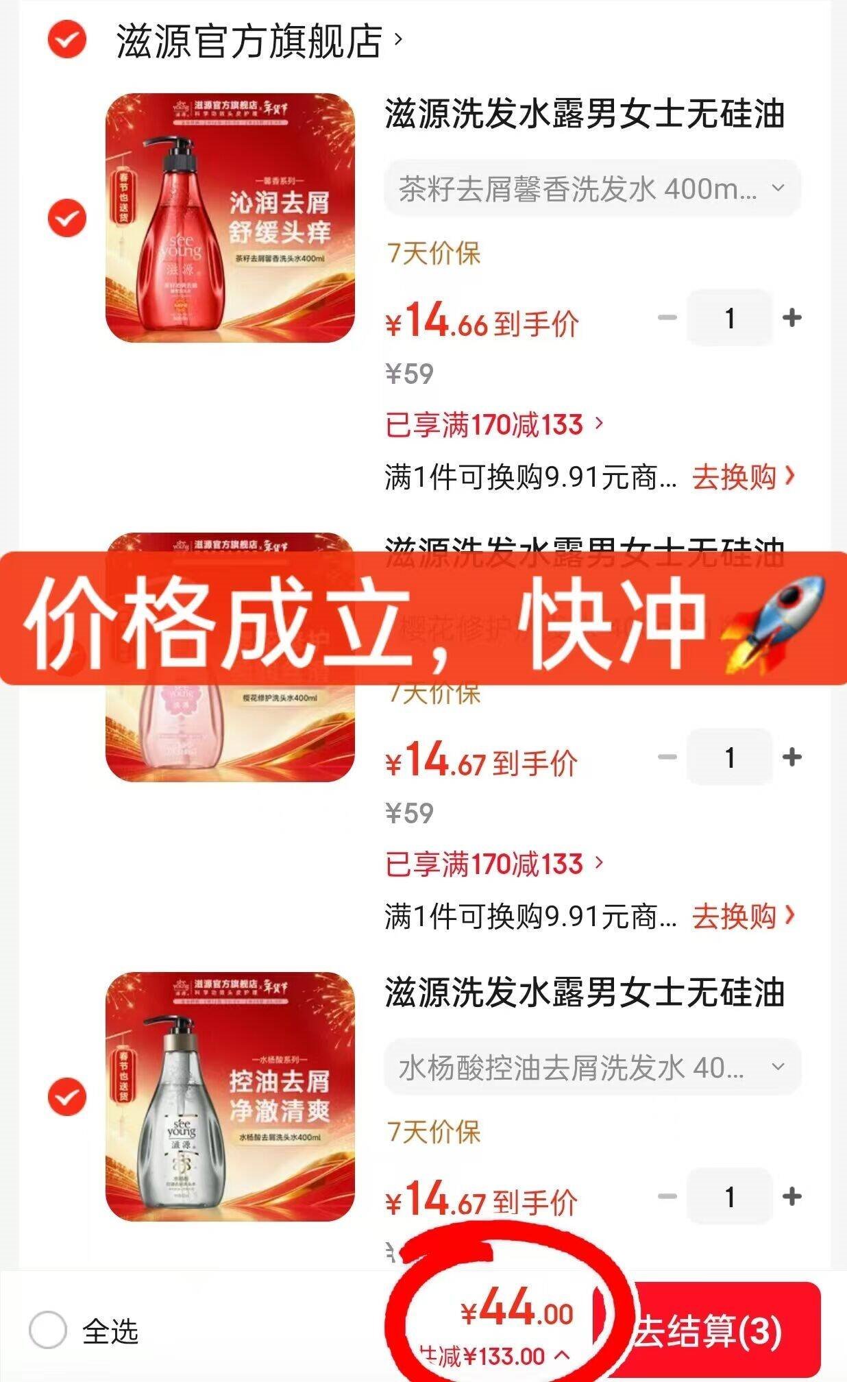 任选3件44亓,折14.6亓/瓶