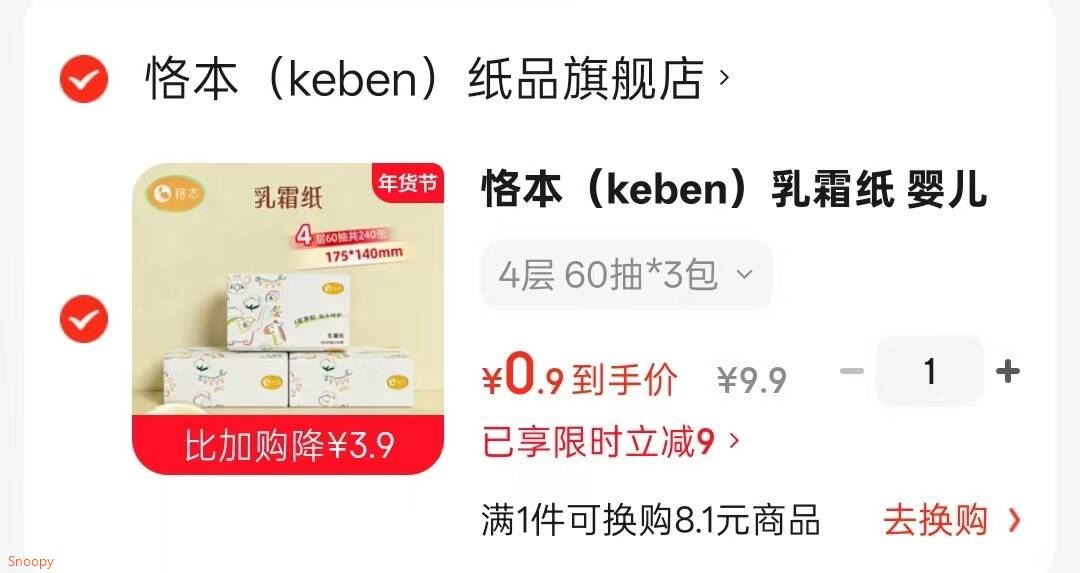部分掉落8或者9券 恪本 keben 乳霜纸 加大加厚175*140mm 4层 60抽*3包 0.9好单发报员2026年02月18日 14:330举报 部分掉落8或者9券 恪本 (keben)乳霜纸 加大加厚175*140mm 4层 60抽*3包【0.9】https://u.jd.com/lGpsAOm 复制文案
