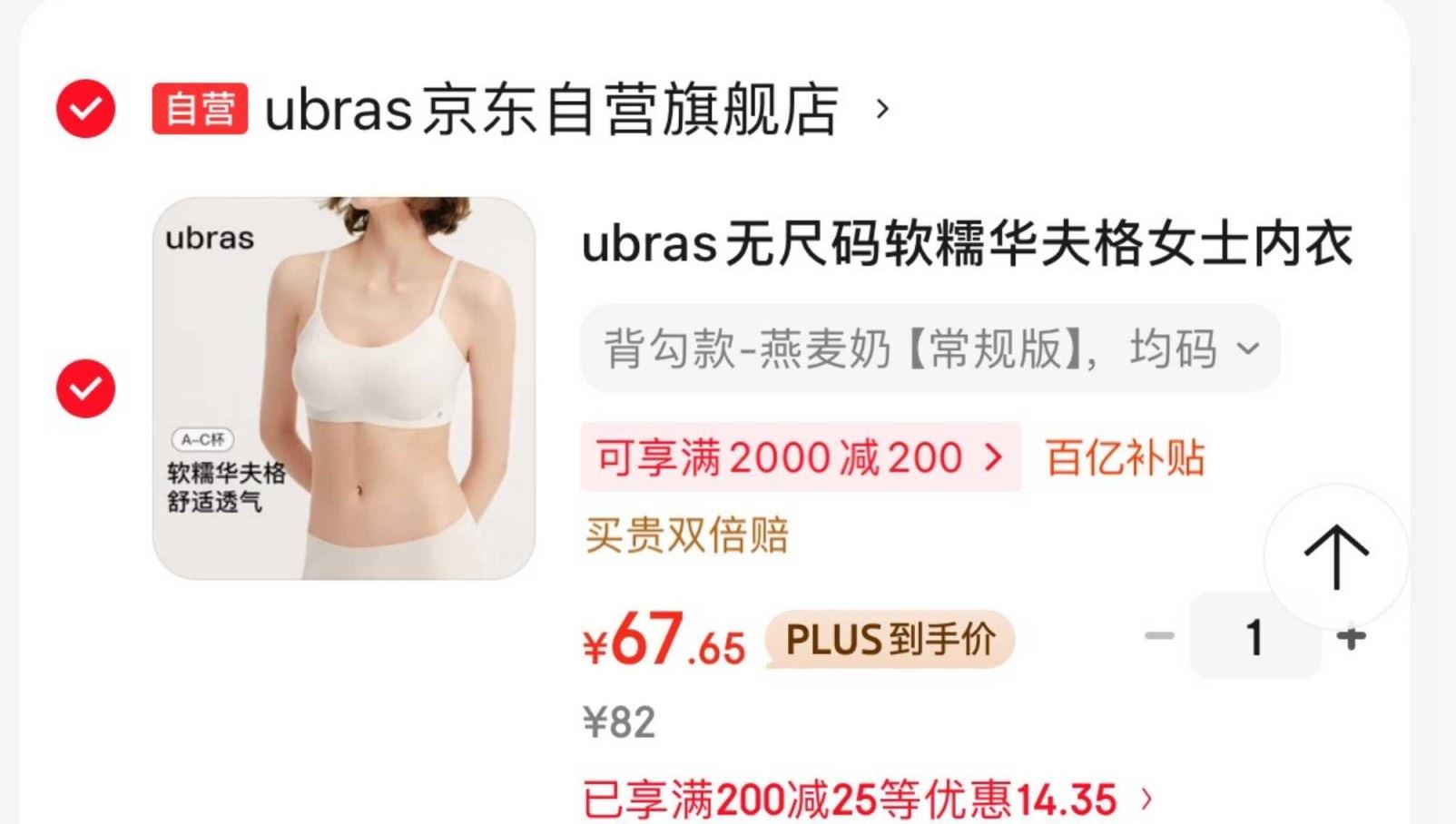 ubras 无尺码软糯华夫格女士内衣,凑后【67.6】如有跳出9.3折券 更低