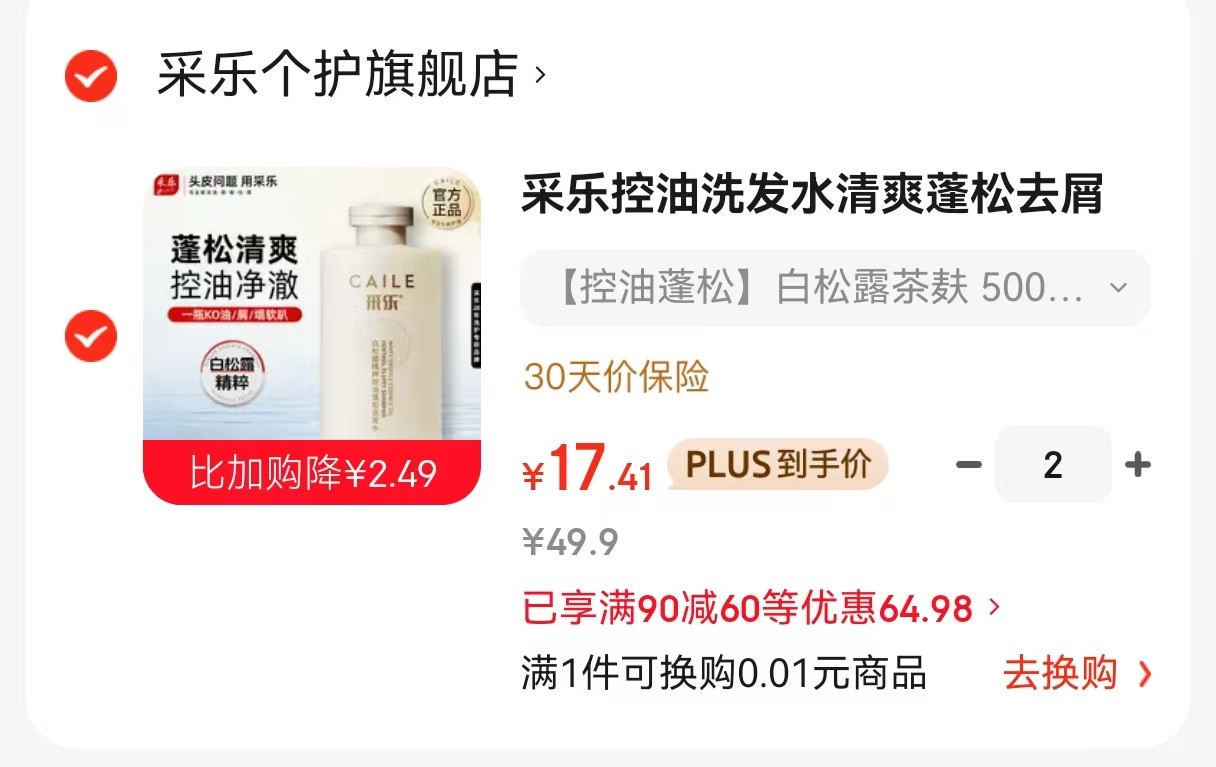 采乐 控油洗发水 白松露茶麸 500ml*1瓶,拍2件【34.8】