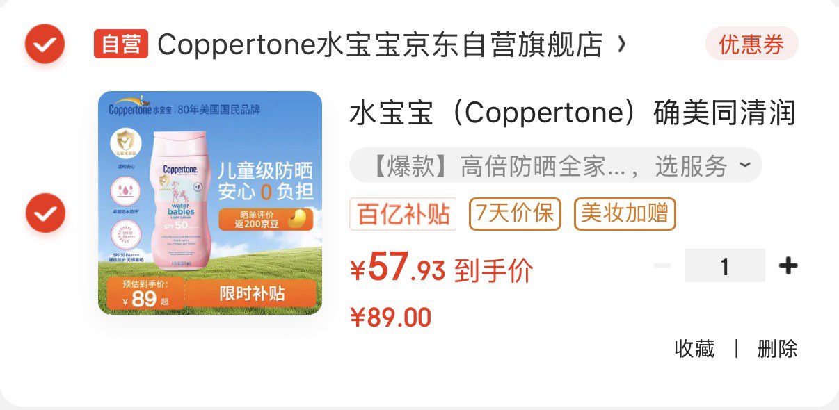 水宝宝儿童防晒如177mlSPF50
