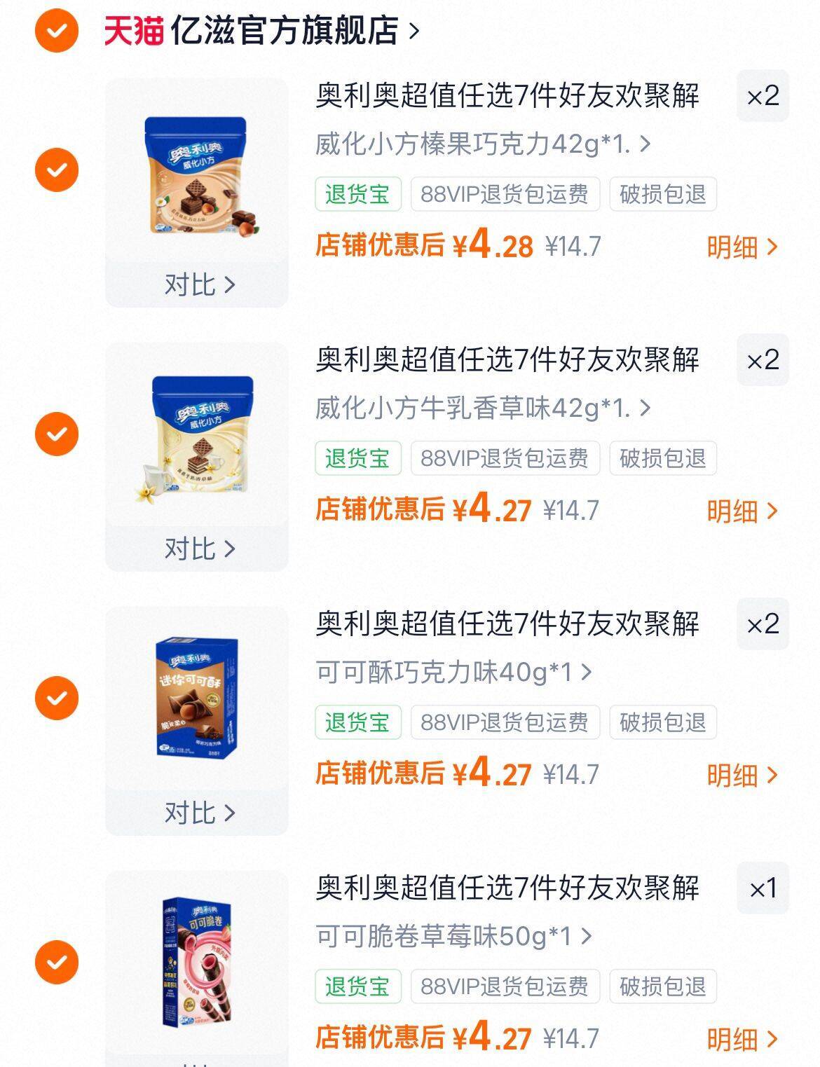 任选7件折4.2亓/盒 奥利奥 可可脆卷威化小方好单发报员2026年03月04日 11:580举报 任选7件折4.2亓/盒奥利奥 可可脆卷威化小方https://m.tb.cn/h.i1OgZKU复制文案