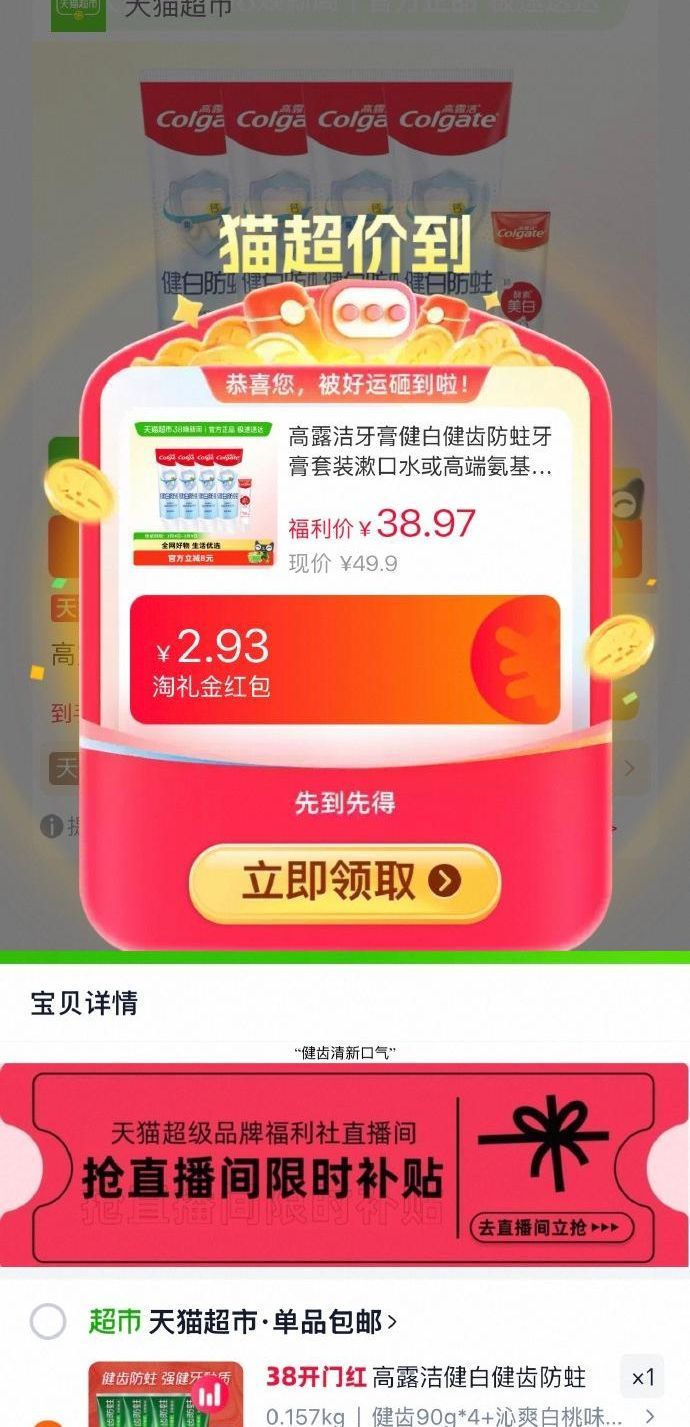高露洁牙膏健齿90g*4支 白桃40g,领礼金