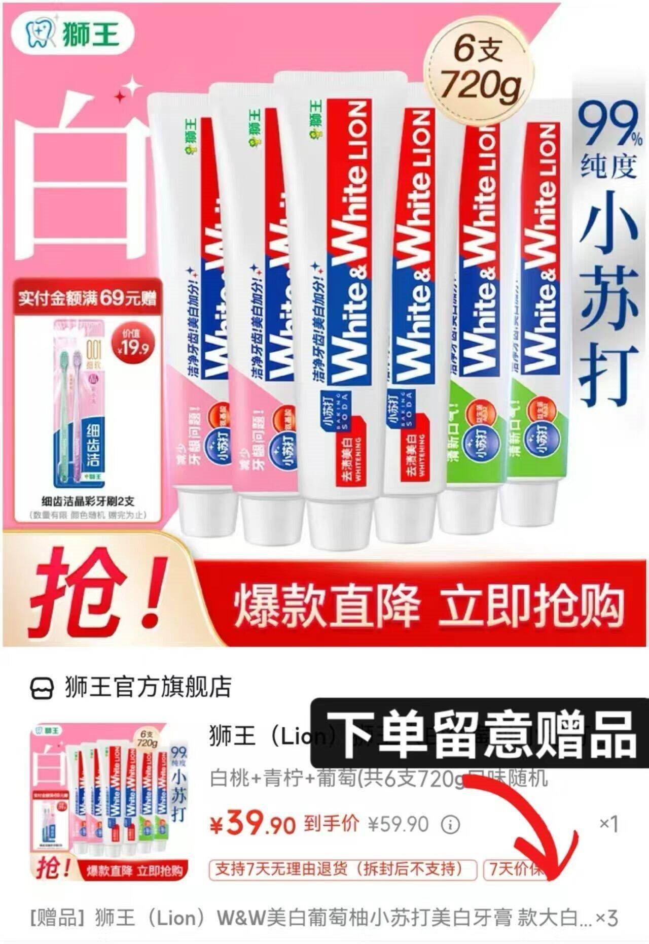 39.9亓,再赠牙膏40g*3支